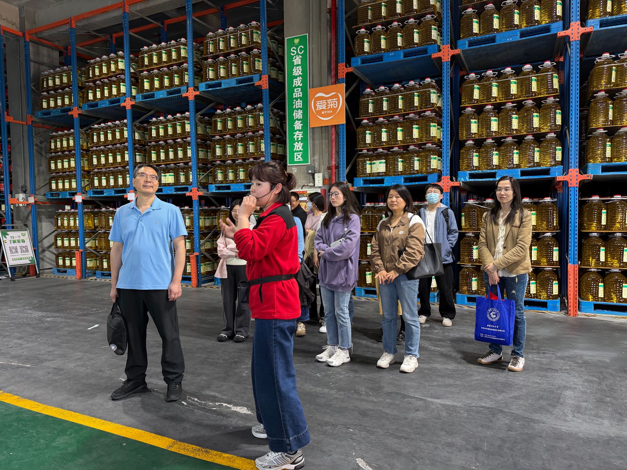 活动期间,全体人员先后参观爱菊浐灞国际港基地的面粉、大米、食用油等多条现代化加工生产线、应急物流基地、质检中心及科普馆,近距离观摩粮油产品生产全流程,详细了解爱菊集团的发展概况、质量管控及核心使命,作为深耕粮油领域的骨干企业,其发展始终与国家战略、民生需求深度绑定。爱菊集团讲解员结合企业实际案例,生动解读了正确政绩观在企业发展中的实践——从坚持“民以食为天”的初心,严格把控全链条食品安全,到响应国家“一带一路”倡议,搭建国际粮油供应链;从建立省市两级粮油应急保障基地,到汶川地震、新冠疫情中积极贡献力量,都彰显着企业“政绩”不是单纯追求经济效益,而是与国家战略需求、百姓福祉紧密绑定的责任担当。
